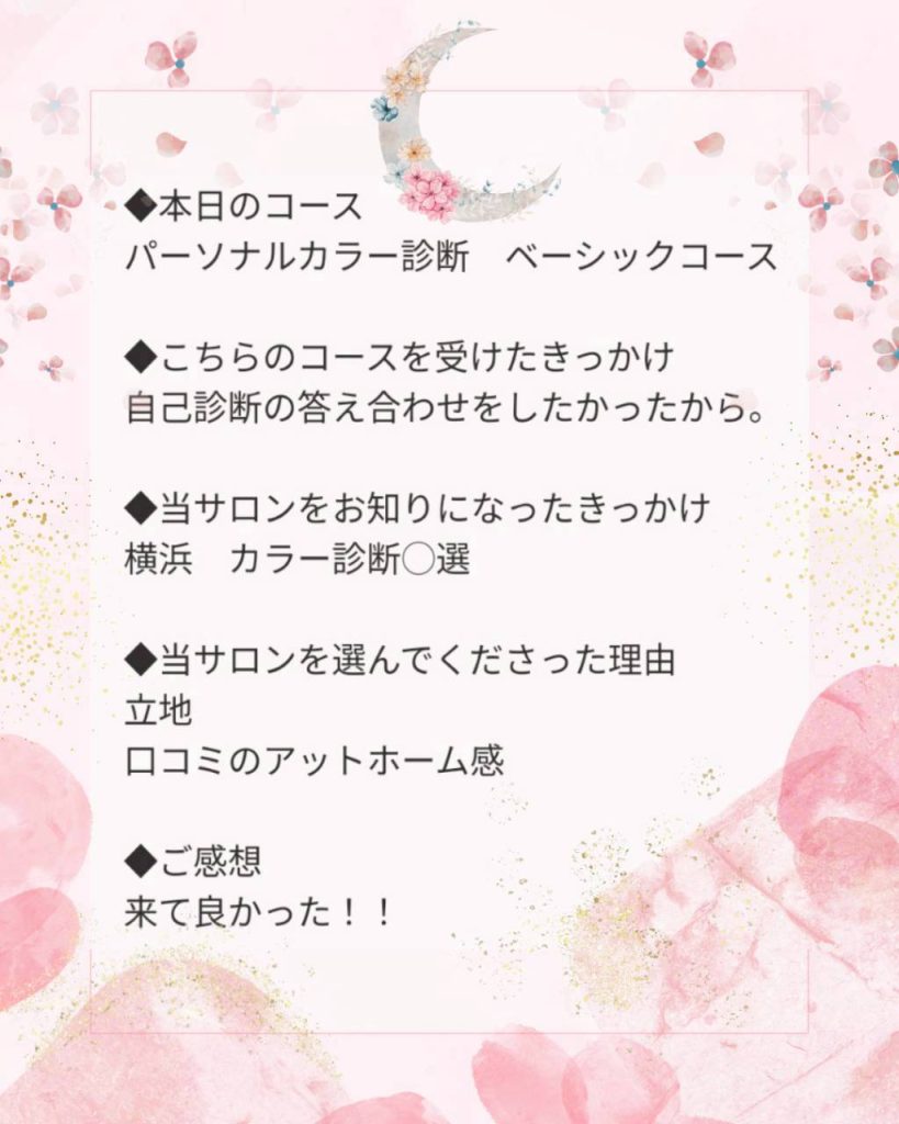 「自己診断の答え合わせができて、来て良かったです!!」【パーソナルカラー診断】ありがとうございました💗✨