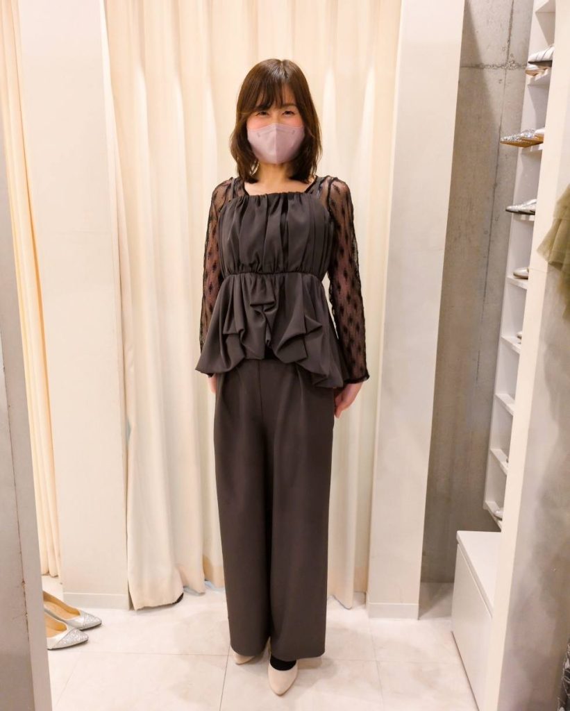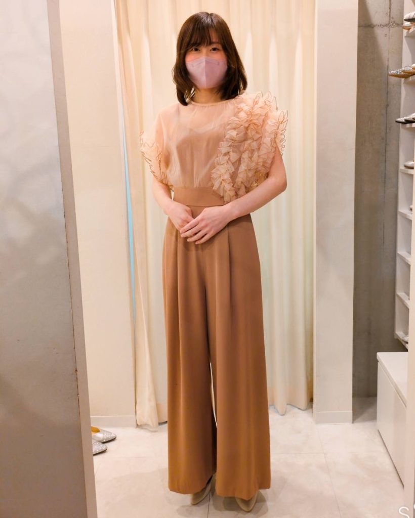 横浜のレンタルドレスサロンでパンツドレスの試着✨